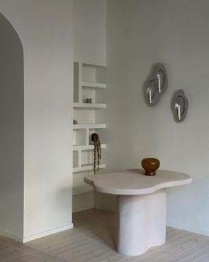 Spændende sammensætninger af produkter, oprindeligt med et andet formål, kan skabe innovative og kreative indretningsløsninger. Forneden er der sprayet en glasprimer på et fad og en kop, inden KABRIC Mulberry blev påført for at lave en lysestage.