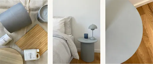 Med en drejebakke, en potteskjuler og en armlænsbakke, kan du nemt og billigt designe dit eget personlige bord. Fra vores KABRIC Floor serie kan du vælge mellem tre typer af lak som egner sig til møbelprojekter. Læs mere om DETALE Strongcoats her. Prepare primer, KABRIC Denim og Strongcoat Matt er brugt for at lave nedenstående bord.