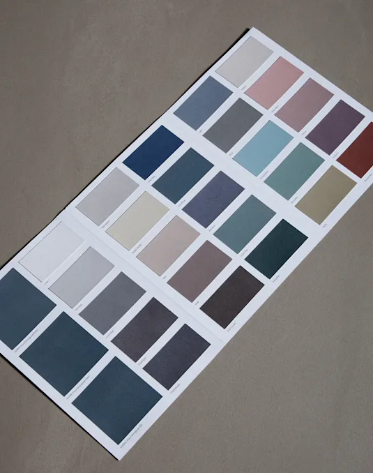 Oplev tekstur og farve med vores håndlavede farveprøver. Mærk de taktile overflader, se forskellen i finish og oplev de støvede, skandinaviske farver.