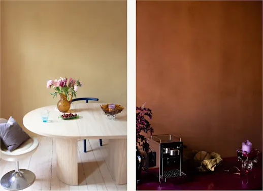 På mine mange ture til Marokko er "farvebrønden" altid fantastisk mættet med de lækreste brændte farver. Da valget af maling i det seneste renoveringsprojekt, som jeg gennemførte under Covid og nedlukning, skulle afgøres, blev valget nemt truffet, da jeg opdagede de brændte toner i spartelserien KC14 fra DETALE CPH. Jeg var solgt.