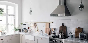 För huvuddelen av kökväggarna och taket användes KC14 Ivory, för att skapa et ljust miljö som utnyttjar flödet av naturligt ljus, som strömmar genom köksfönstret. De ville skapa väldigt ljusa väggar, men med effekt och uttryck, till skillnad från en vit färg.