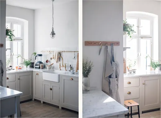 För detta ändamål krävs en snygg och fotovänlig miljö och bakgrund. Så när de bestämde sig för att renovera sitt studiokök valde de att använda DETALE KC14 i tre olika färger på de flesta köksväggarna för att skapa den perfekta pittoreska omgivningen.