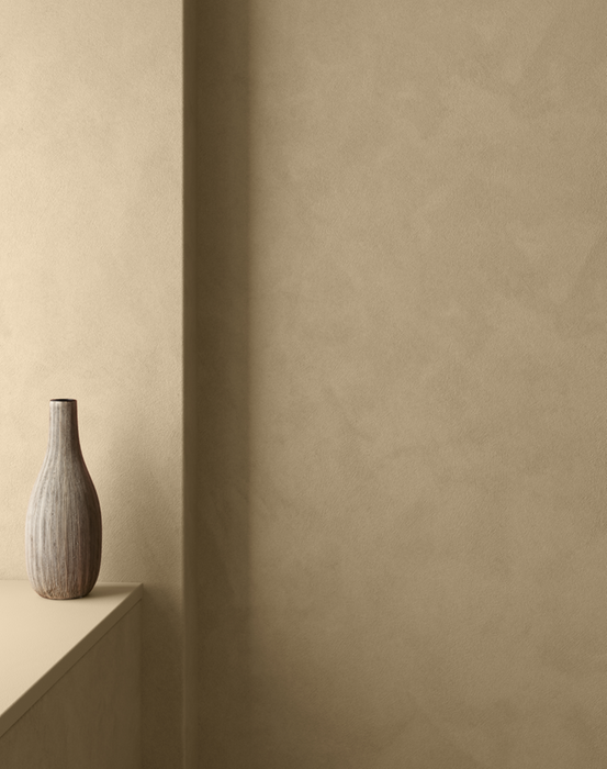 KC14 är ett färgat spackel med en specialutvecklad Topcoat, som skapar taktila och vackra väggar, med en halvmatt finish.