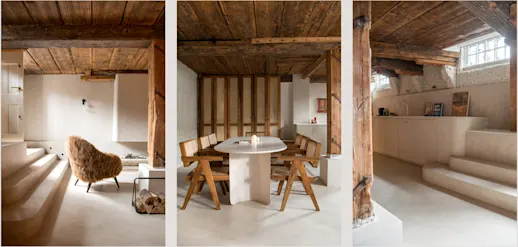 Connecting rooms with different purposes provides continuity and flexibility when the architectural elements remain consistent. The professional business area can easily transition from late-night cocktails to a peaceful dinner and a private sanctuary.