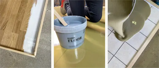 Parkett: Prepare og Smooth Prepare kan begge brukes på parkettgulv. Hvis du vil være helt sikker på at parkettgulvet ikke er svakt synlig gjennom det endelige resultatet, skal Smooth Prepare brukes. Siden parkettgulv ikke trenger å jevnes ut, men bare stabiliseres, kan Smooth Prepare brukes uten komponent C; Filler.