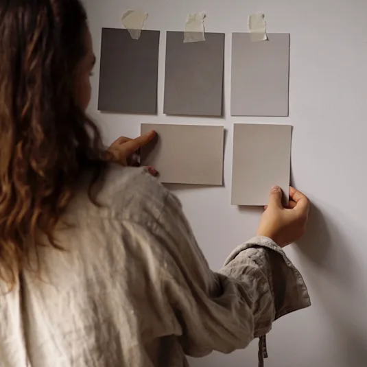 Oppdag tekstur og farge med våre håndlagde fargeprøver. Kjenn på de taktile overflatene, se forskjellen i finish og opplev de støvede, skandinaviske fargene.