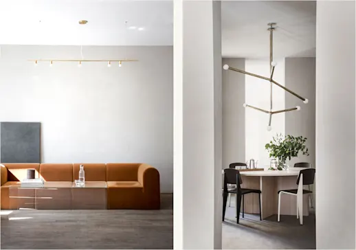 Den tredje zonen är en mer avskilda arbetsyta med öppen planlösning inredd med skräddarsydda ekbord. De sandtonade väggarna på Pale Beach är avsedda att eka fasaderna på Köpenhamns neoklassiska byggnader.