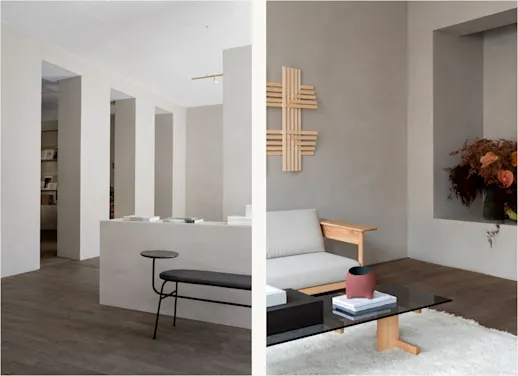 Inspirationskällan för de stora och öppna utrymmena på Kinfolk Magazine kommer från en kombination av skandinaviska och japanska influenser. För väggarna som skapar omgivningen för galleriet och kontoret valde Norm Architects att använda KC14 i färgen Pale Beach. Ytans taktilitet och färgval gjordes för att efterlikna fasaderna i de omgivande neoklassiska byggnaderna i centrala Köpenhamn.