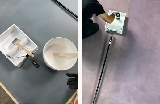 Själva KABRIC Floor-färgen är gjord på samma principer som KABRIC för vägg, men på en golvteknik, vilket gör den mer robust och därför lämplig för golv.