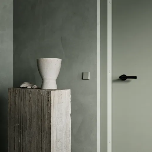 Variationen i struktur förhindrar att huvudfärgen blir helt platt. Därför är KABRIC eller KC14 mycket bra alternativer när du vill skapa denna typ av en homogen miljö. Ett bra tips kan vara att använda de mer lugna och mjuke nyanserna på större ytor, t.ex. väggar och tak, och ljusare toner för mindre föremål som du vill sticka ut.