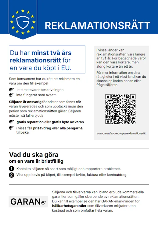 • Du måste kunna styrka ditt köp genom att visa upp fakturan för de produkter som reklamationen gäller.