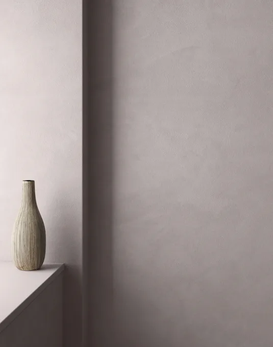 KABRIC är en texturfärg som kombinerar färgens funktionella egenskaper med spackels' visuella egenskaper i en matt, tygliknande yta.