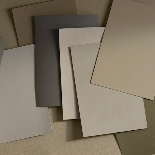 Upptäck textur och färg med våra handgjorda färgprover. Känn de taktila ytorna, se skillnaden i finish och upplev de dammiga, skandinaviska färgerna.