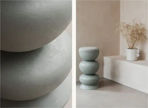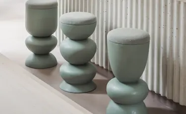 With these versatile stools, function and aesthetics meet in a perfect match. These unique stools are all about texture. KABRIC in the colour Big Apple accentuates the perception of perfection in curved shapes and undefines lines. The stools, which range in height from 65cm to 75cm, are topped with a cushion made from a textured wool and cotton bouclé cloth from London-based textile studio Tibor’s Wellington collection.