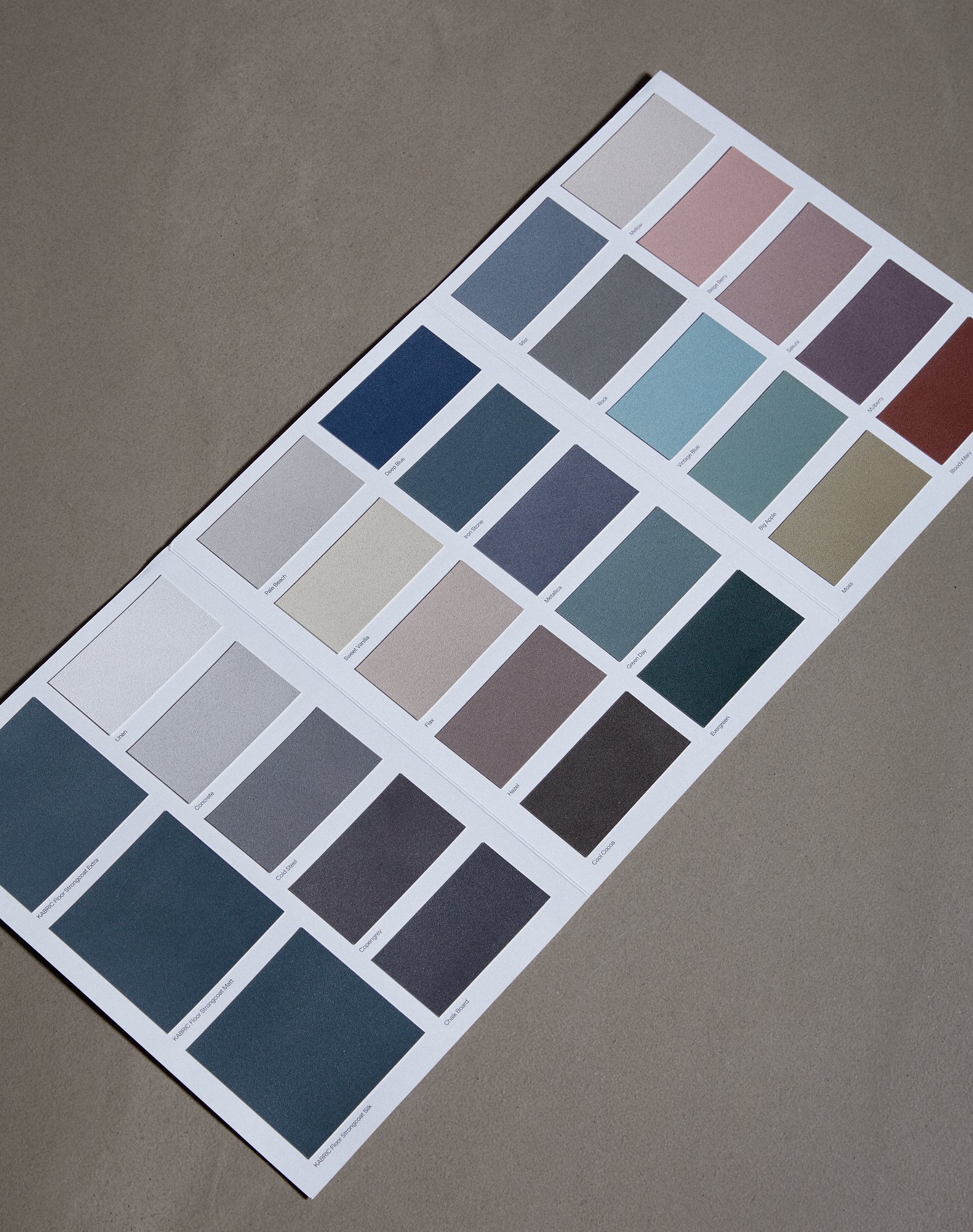Crafted with care, this collection of all 25 KABRIC Floor colours presented in a convenient folder, carefully manufactured using a meticulously perfected technique to ensure an exact representation of our textures and colours.